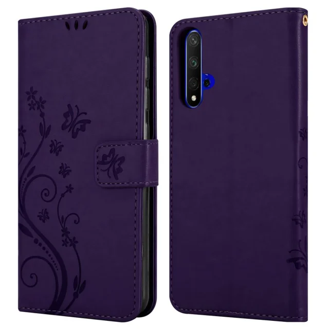 CADORABO Honor 20/20S/Huawei NOVA 5T temno modra - ovitek v cvetličnem dizajnu z magnetnim zapiranjem, stoječo funkcijo in režami za kartice