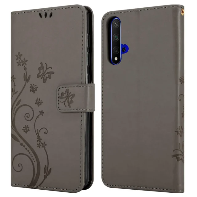 CADORABO Honor 20/20S/Huawei NOVA 5T v klasična črna - ovitek v cvetličnem dizajnu z magnetnim zapiranjem, stoječo funkcijo in režami za kartice