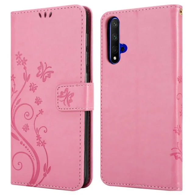CADORABO Honor 20/20S/Huawei NOVA 5T v klasična zlata - ovitek v cvetličnem dizajnu z magnetnim zapiranjem, stoječo funkcijo in režami za kartice