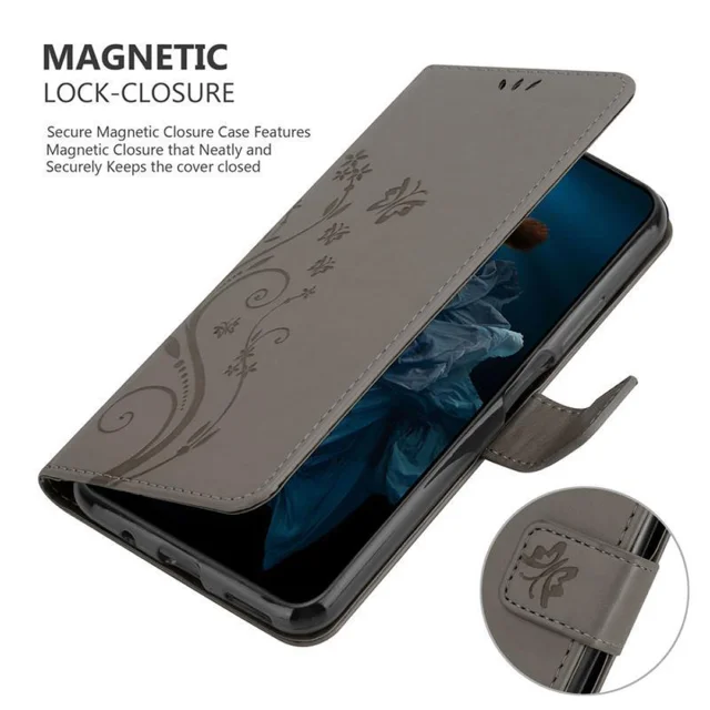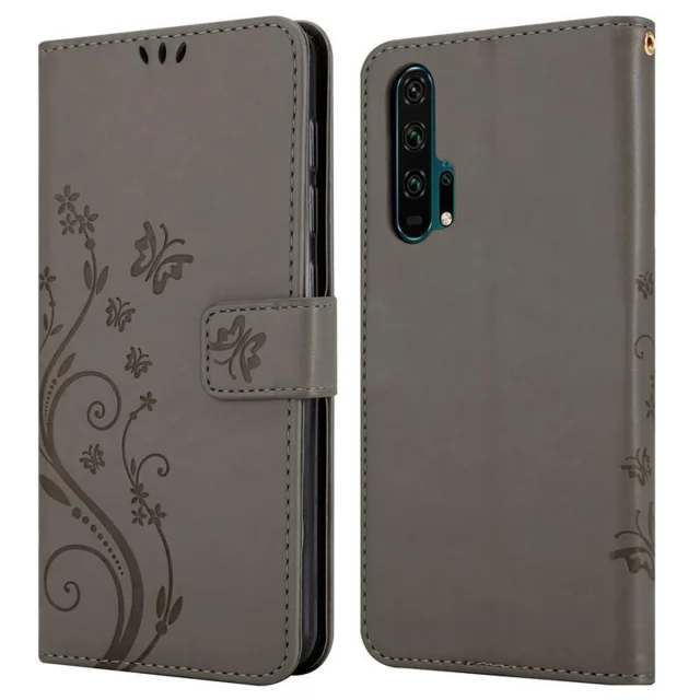 CADORABO Honor 20 PRO v klasična črna - ovitek v cvetličnem dizajnu z magnetnim zapiranjem, stoječo funkcijo in režami za kartice