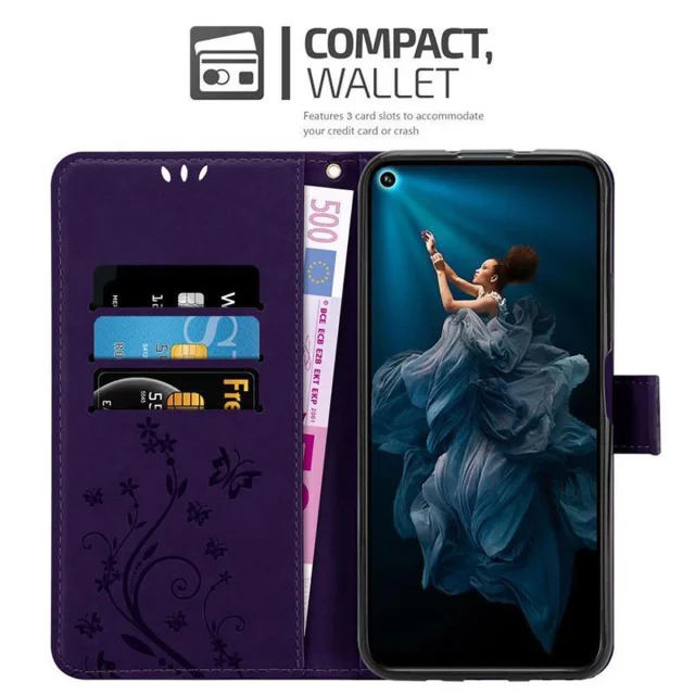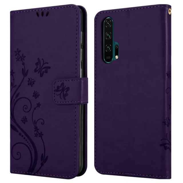 CADORABO Honor 20 PRO v klasična temno modra - ovitek v cvetličnem dizajnu z magnetnim zapiranjem, stoječo funkcijo in režami za kartice