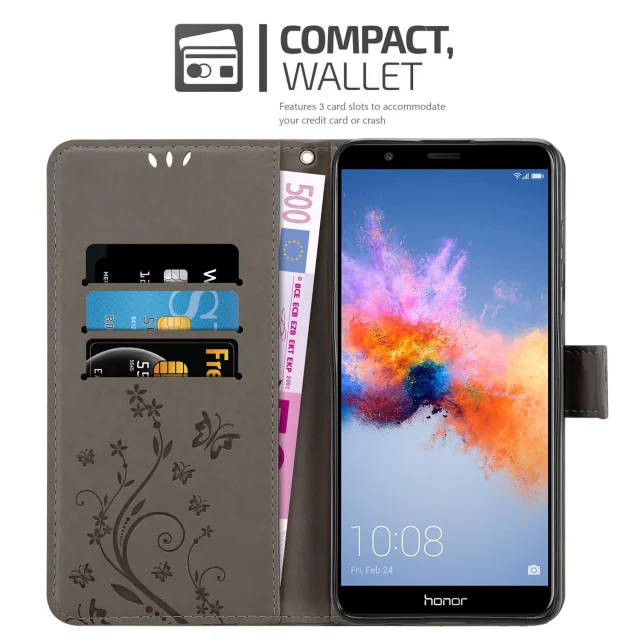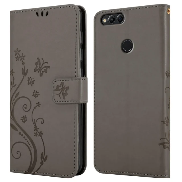 CADORABO Honor 7X v klasična črna - ovitek v cvetličnem dizajnu z magnetnim zapiranjem, stoječo funkcijo in režami za kartice