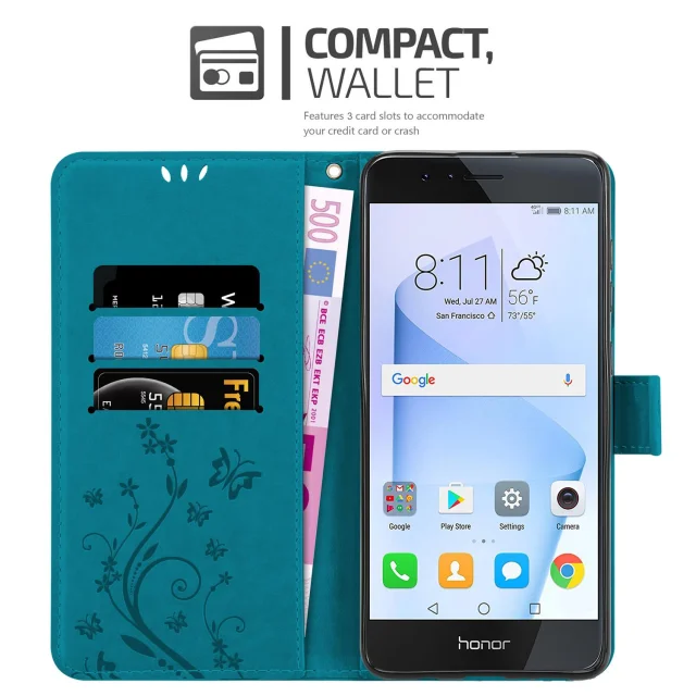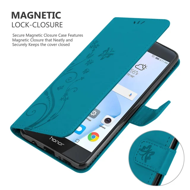 CADORABO Honor 8/8 PREMIUM v klasična rožnata zlata - ovitek v cvetličnem dizajnu z magnetnim zapiranjem, stoječo funkcijo in režami za kartice