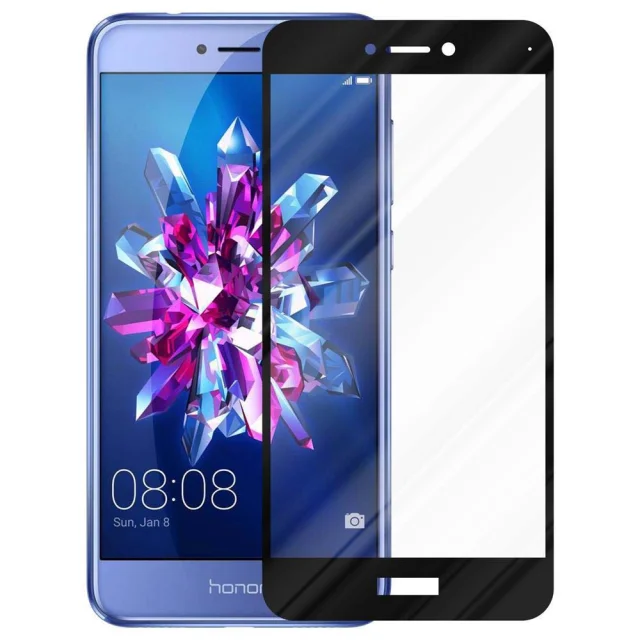 CADORABO Honor 8 LITE - Zaščitna folija za transparentna s črno barvo - Zaščitno steklo s kaljenim zaslonom s trdoto 9H in 3D dotikom