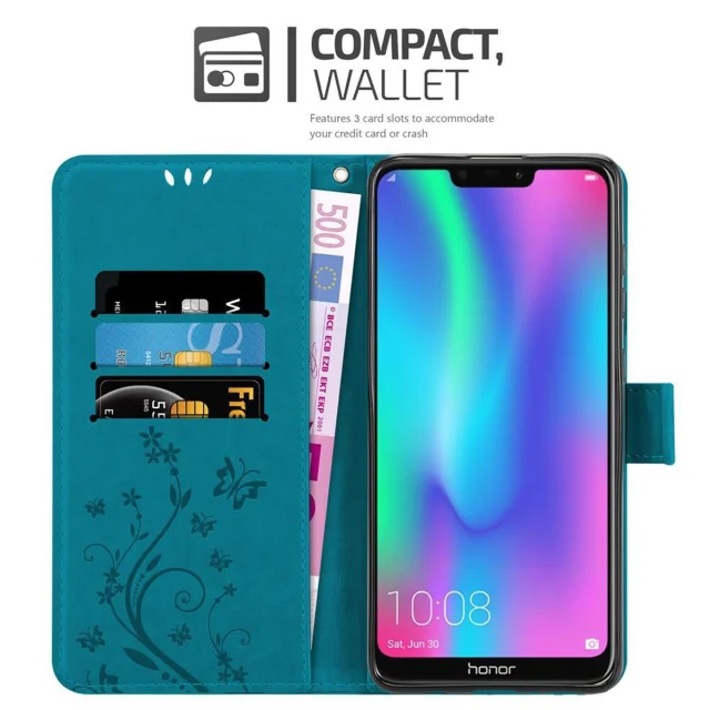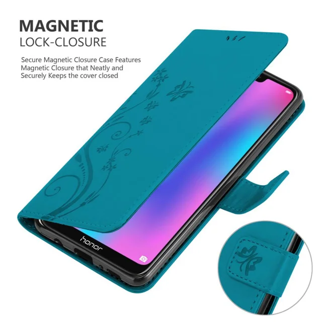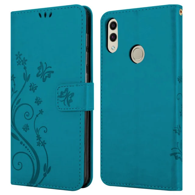 CADORABO Honor 8C v klasična rožnata zlata - ovitek v cvetličnem dizajnu z magnetnim zapiranjem, stoječo funkcijo in režami za kartice