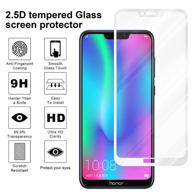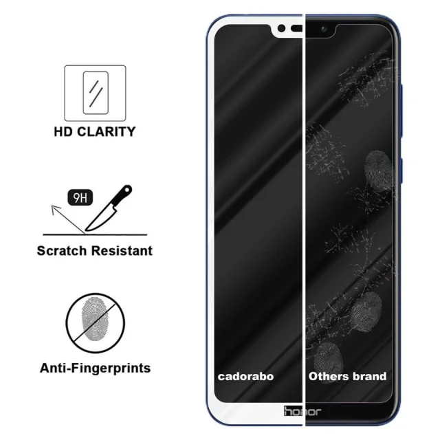 CADORABO Honor 8C - Zaščitna folija za transparentna z belo - Zaščitno steklo s kaljenim zaslonom s trdoto 9H in 3D dotikom