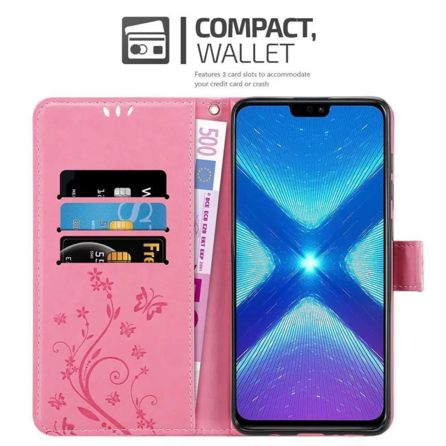 CADORABO Honor 8X v klasična zlata - ovitek v cvetličnem dizajnu z magnetnim zapiranjem, stoječo funkcijo in režami za kartice