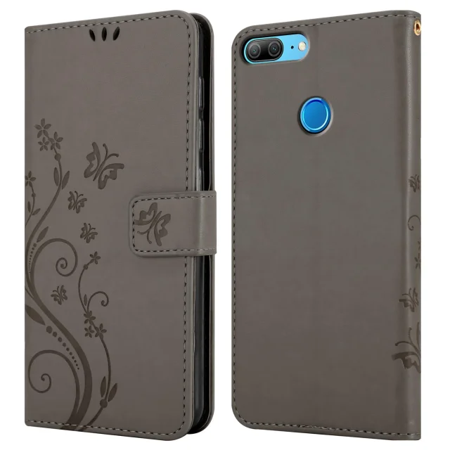 CADORABO Honor 9 LITE v klasična črna - ovitek v cvetličnem dizajnu z magnetnim zapiranjem, stoječo funkcijo in režami za kartice