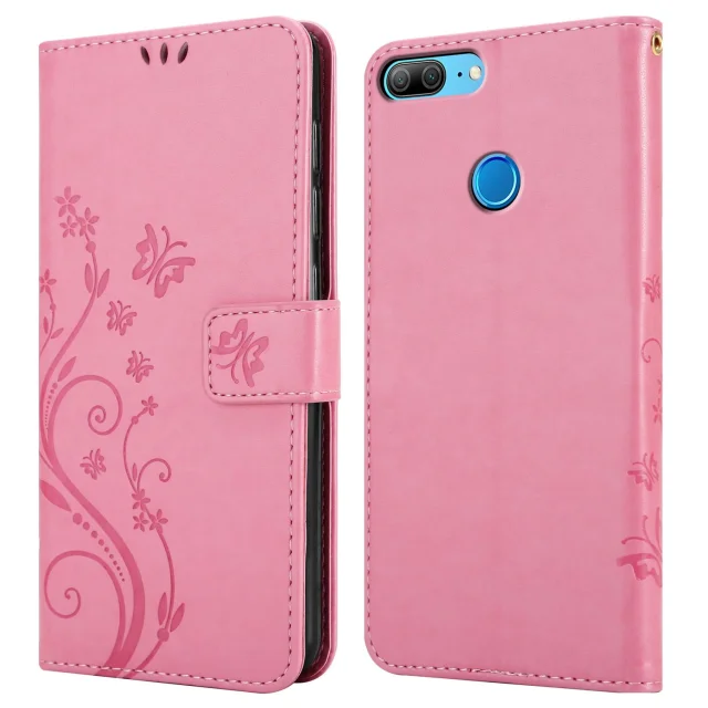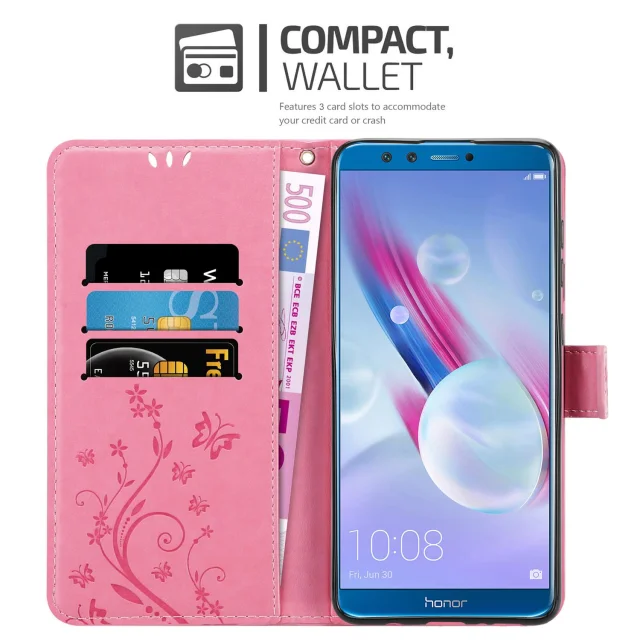 CADORABO Honor 9 LITE v klasična zlata - ovitek v cvetličnem dizajnu z magnetnim zapiranjem, stoječo funkcijo in režami za kartice