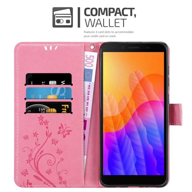 CADORABO Honor 9S/Huawei Y5P v klasična zlata - ovitek v cvetličnem dizajnu z magnetnim zapiranjem, stoječo funkcijo in režami za kartice