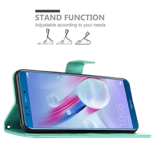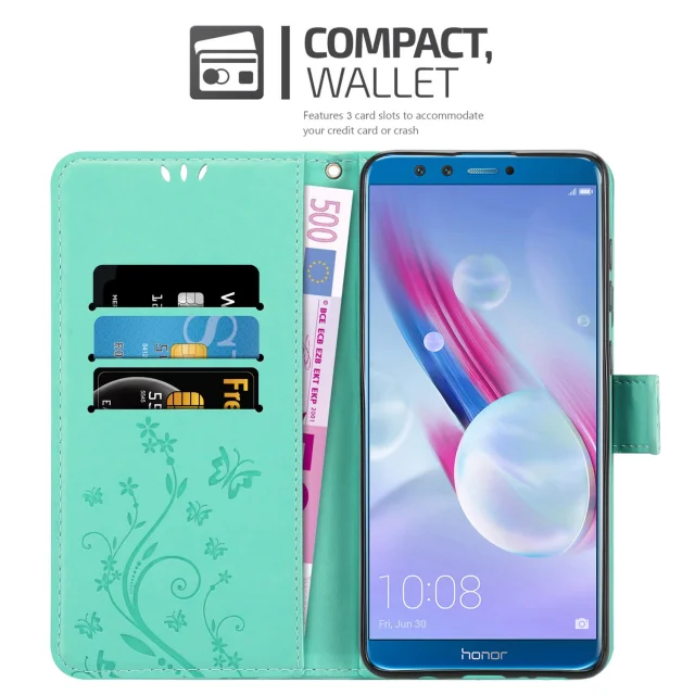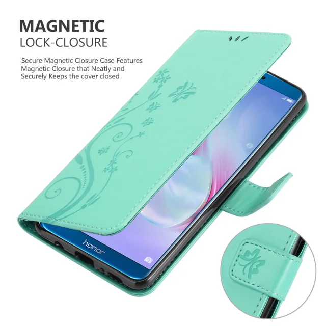 CADORABO Honor 9X LITE v klasično srebrno - ovitek v cvetličnem dizajnu z magnetnim zapiranjem, stoječo funkcijo in režami za kartice