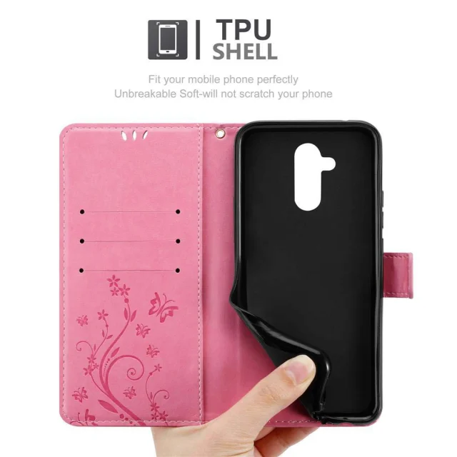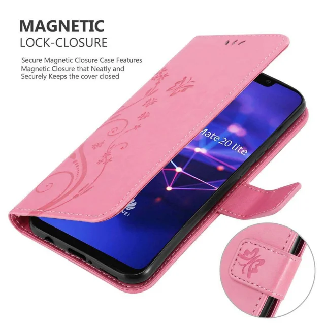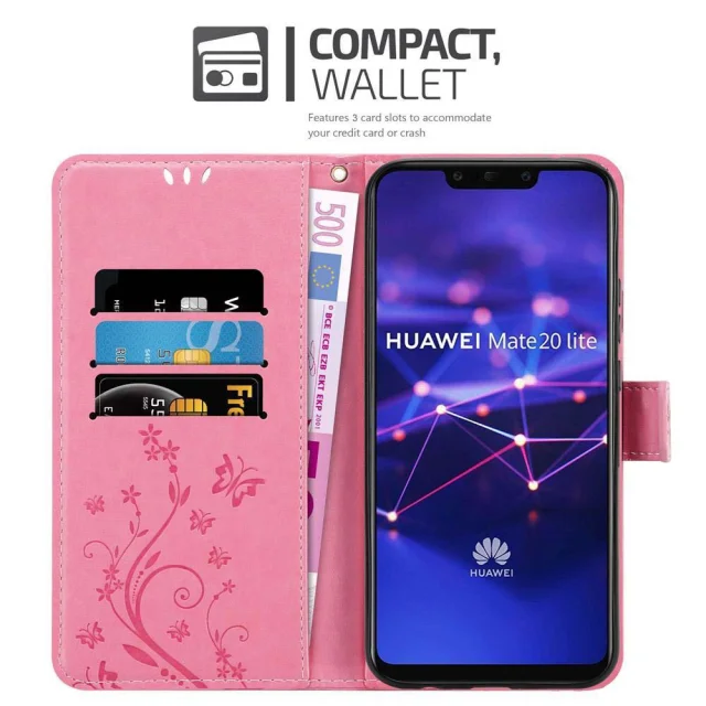 CADORABO Huawei MATE 20 LITE v klasična zlata - ovitek v cvetličnem dizajnu z magnetnim zapiranjem, stoječo funkcijo in režami za kartice