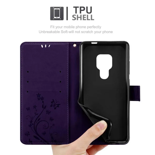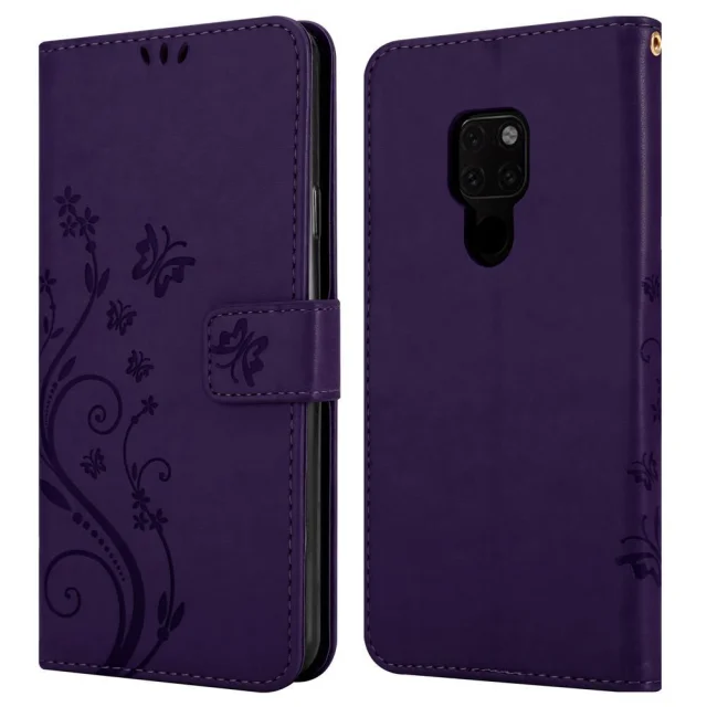 CADORABO Huawei MATE 20 v klasična temno modra - ovitek v cvetličnem dizajnu z magnetnim zapiranjem, stoječo funkcijo in režami za kartice