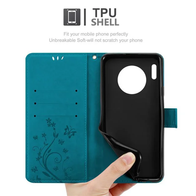 CADORABO Huawei MATE 30 PRO v klasična rožnata zlata - ovitek v cvetličnem dizajnu z magnetnim zapiranjem, stoječo funkcijo in režami za kartice