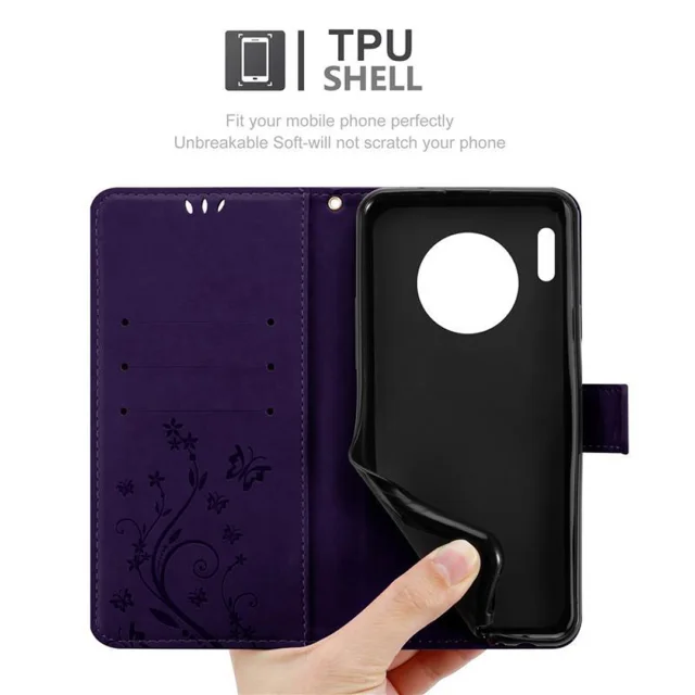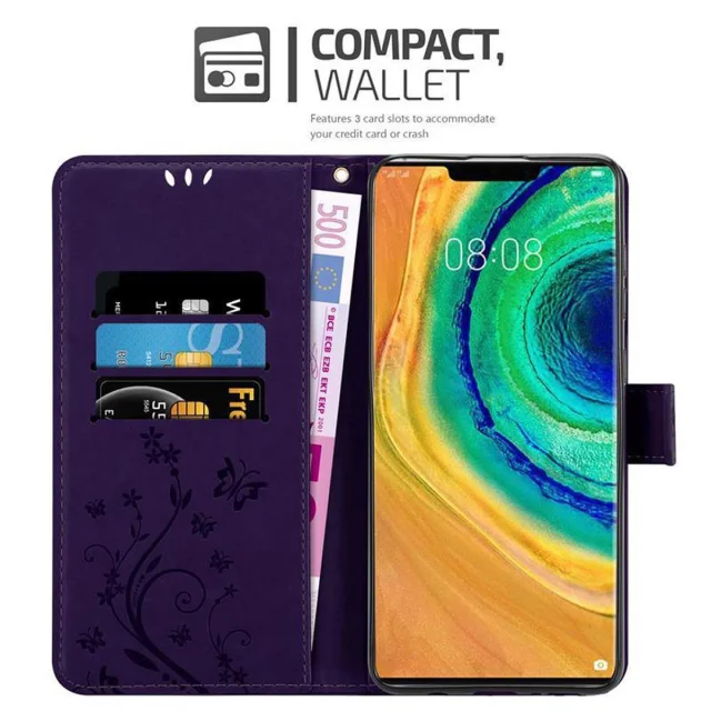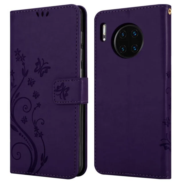 CADORABO Huawei MATE 30 PRO v klasična temno modra - ovitek v cvetličnem dizajnu z magnetnim zapiranjem, stoječo funkcijo in režami za kartice