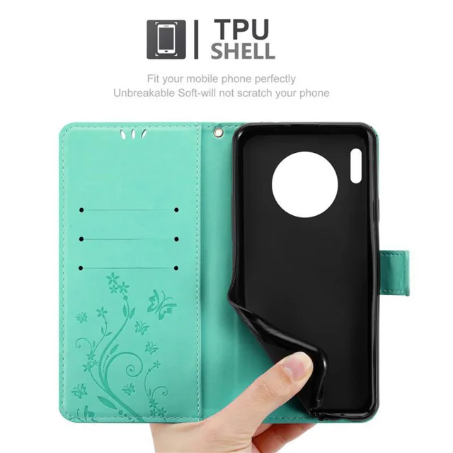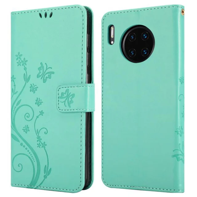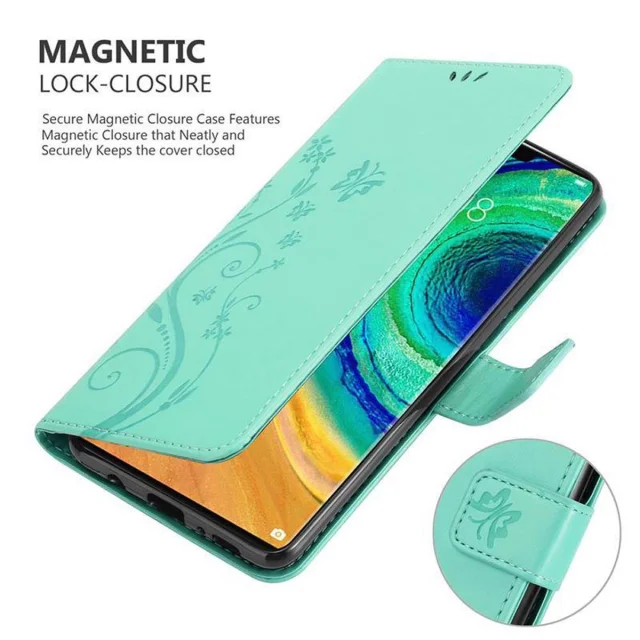 CADORABO Huawei MATE 30 PRO v klasično srebrno - ovitek v cvetličnem dizajnu z magnetnim zapiranjem, stoječo funkcijo in režami za kartice