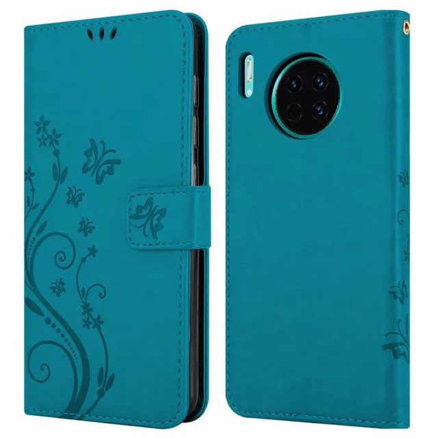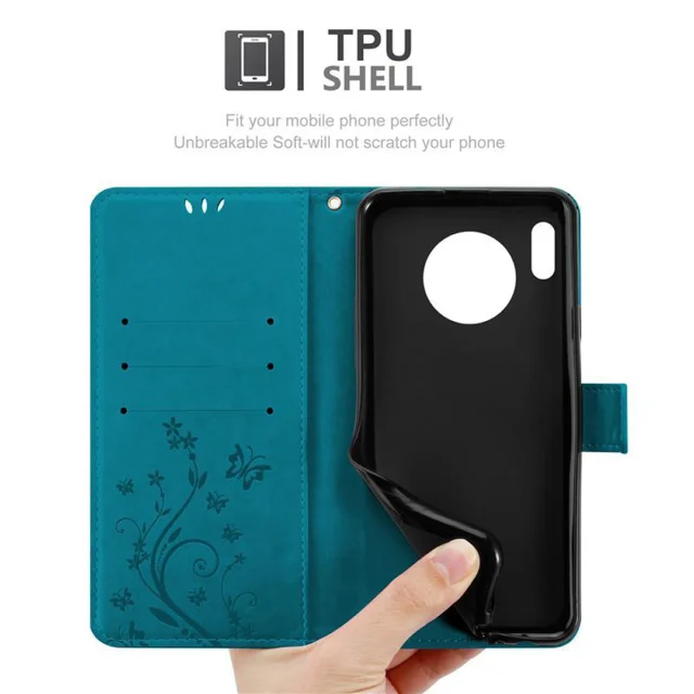 CADORABO Huawei MATE 30 v klasična rožnata zlata - ovitek v cvetličnem dizajnu z magnetnim zapiranjem, stoječo funkcijo in režami za kartice