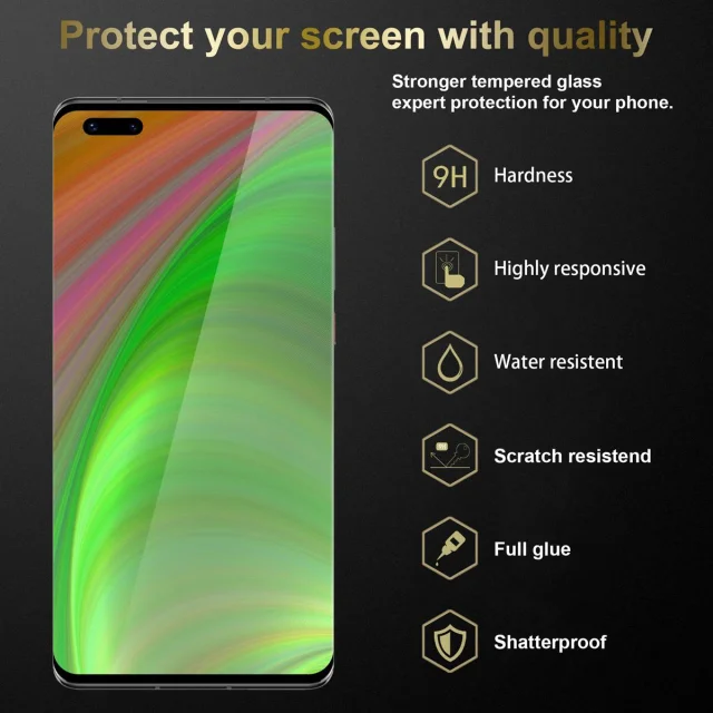 CADORABO Huawei MATE 40 PRO - Zaščitna folija za transparentna s črno barvo - Zaščitno steklo s kaljenim zaslonom s trdoto 9H in 3D dotikom