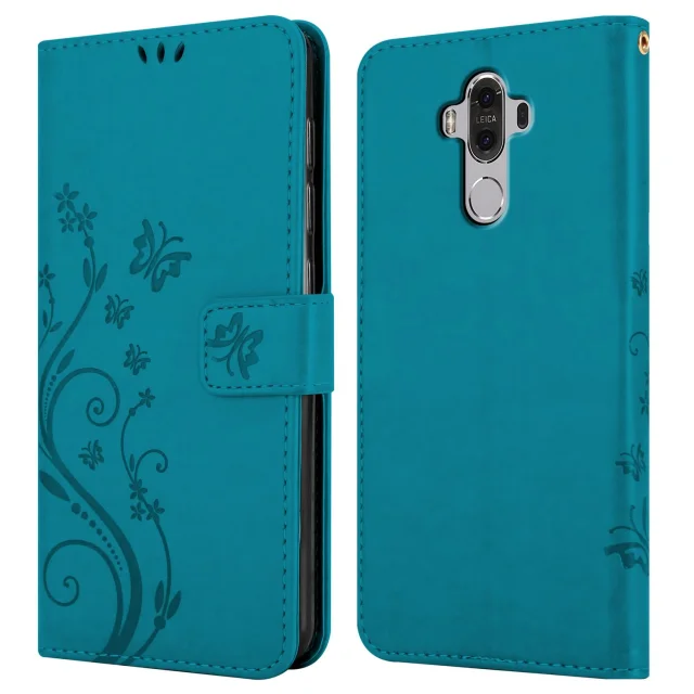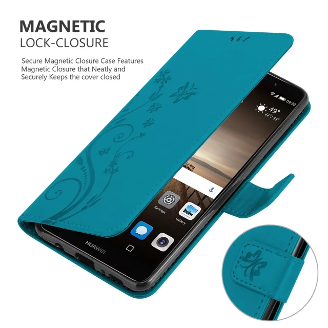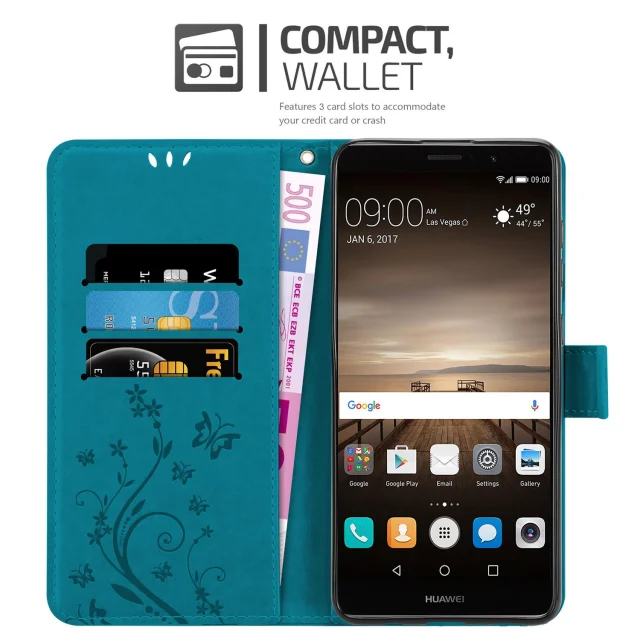 CADORABO Huawei MATE 9 v klasična rožnata zlata - ovitek v cvetličnem dizajnu z magnetnim zapiranjem, stoječo funkcijo in režami za kartice
