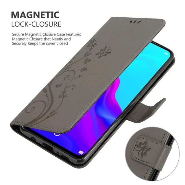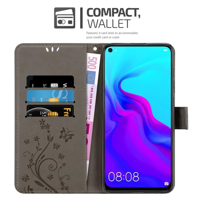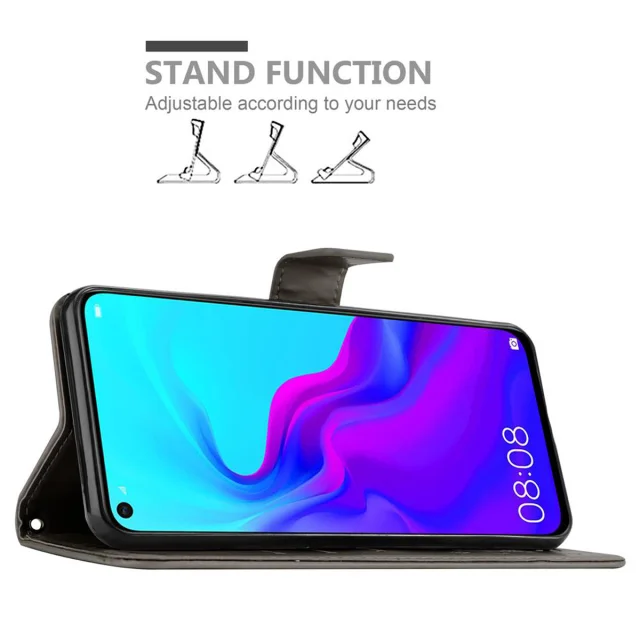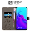 CADORABO Huawei NOVA 4 v klasična črna - ovitek v cvetličnem dizajnu z magnetnim zapiranjem, stoječo funkcijo in režami za kartice