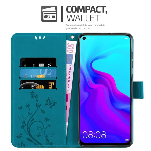 CADORABO Huawei NOVA 4 v klasična rožnata zlata - ovitek v cvetličnem dizajnu z magnetnim zapiranjem, stoječo funkcijo in režami za kartice
