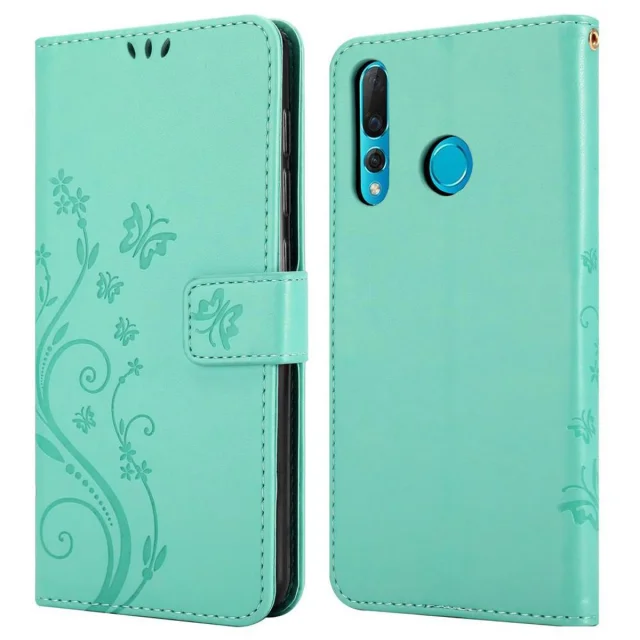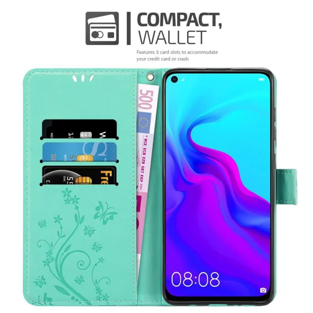 CADORABO Huawei NOVA 4 v klasično srebrno - ovitek v cvetličnem dizajnu z magnetnim zapiranjem, stoječo funkcijo in režami za kartice