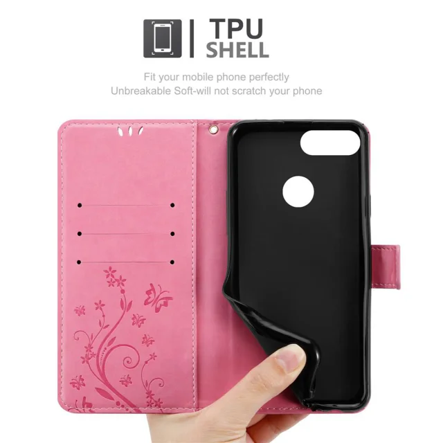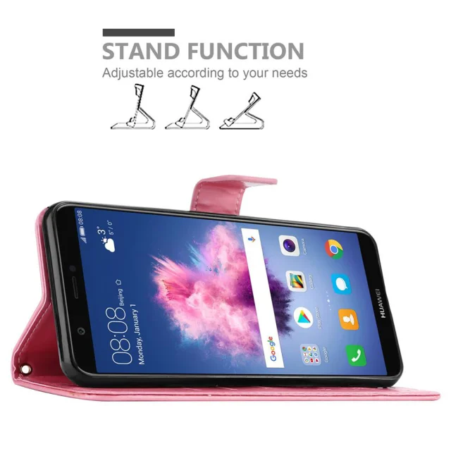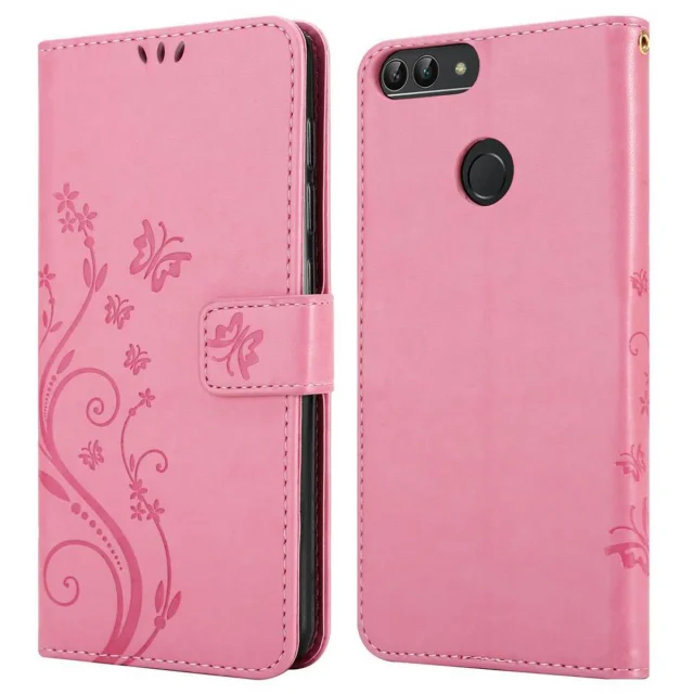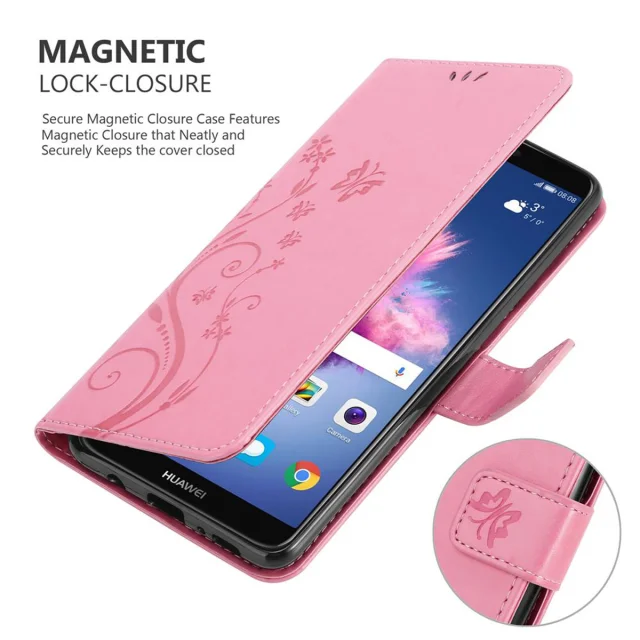 CADORABO Huawei P SMART 2018/Enjoy 7S v klasična zlata - ovitek v cvetličnem dizajnu z magnetnim zapiranjem, stoječo funkcijo in režami za kartice