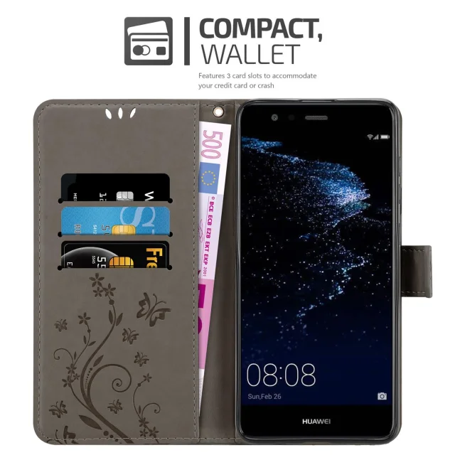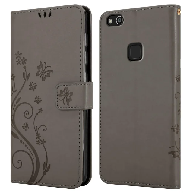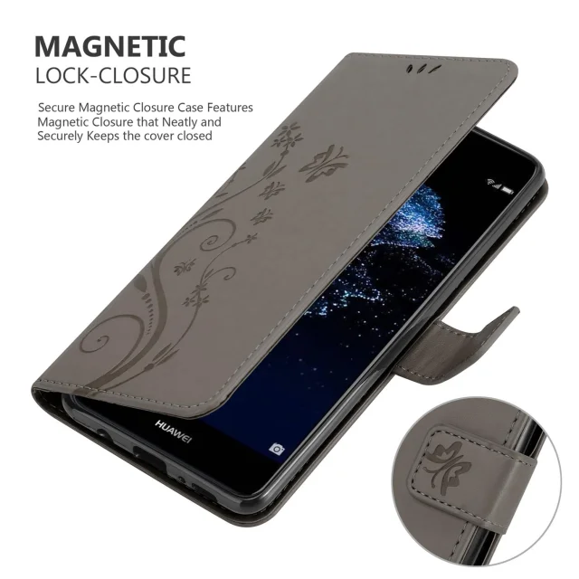 CADORABO Huawei P10 LITE v klasična črna - ovitek v cvetličnem dizajnu z magnetnim zapiranjem, stoječo funkcijo in režami za kartice