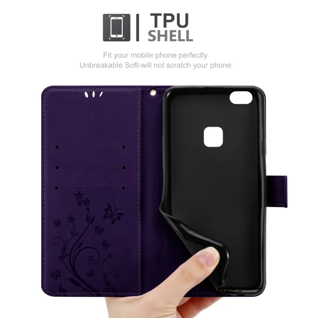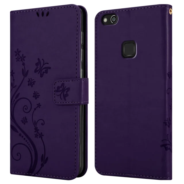 CADORABO Huawei P10 LITE v klasična temno modra - ovitek v cvetličnem dizajnu z magnetnim zapiranjem, stoječo funkcijo in režami za kartice