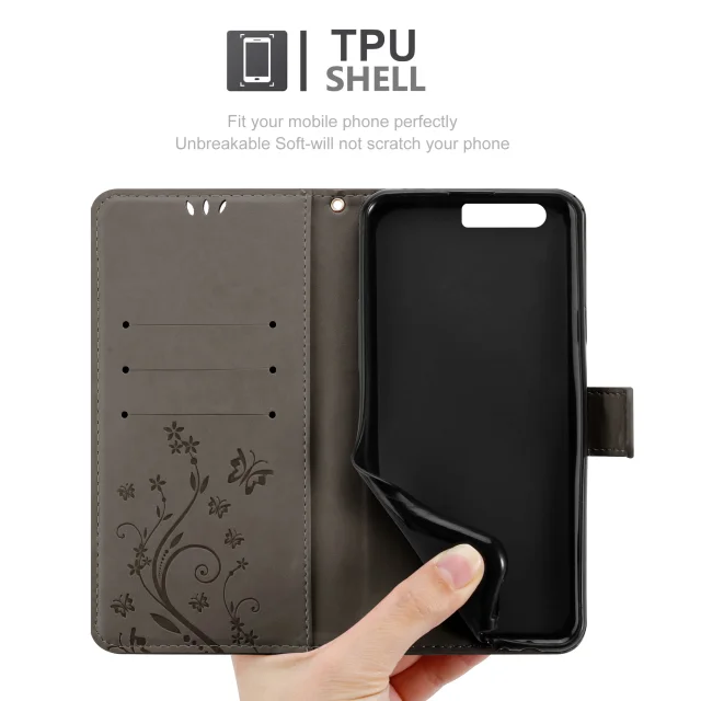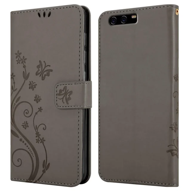CADORABO Huawei P10 PLUS v klasična črna - ovitek v cvetličnem dizajnu z magnetnim zapiranjem, stoječo funkcijo in režami za kartice