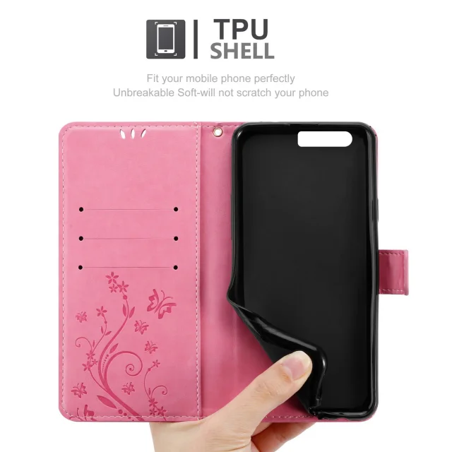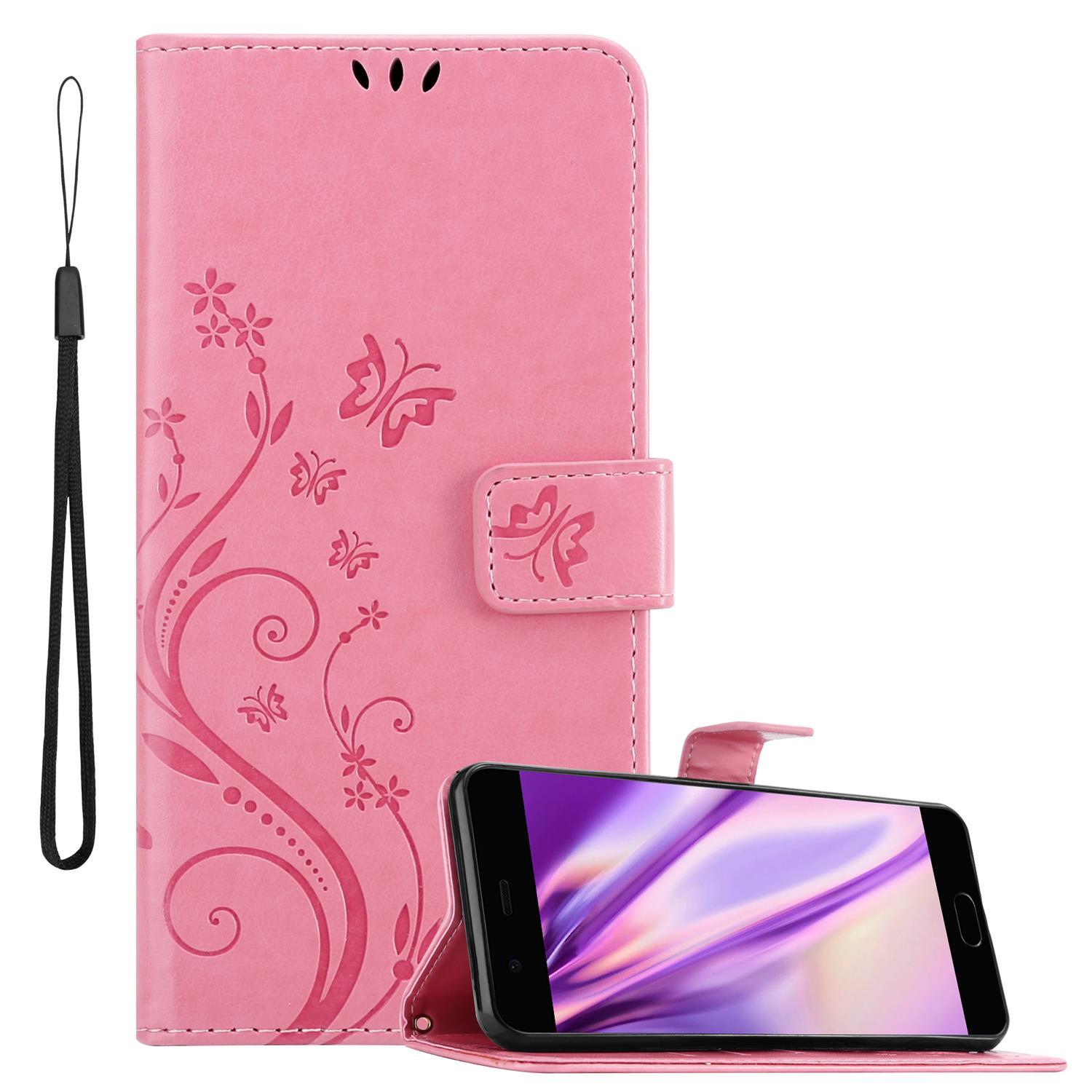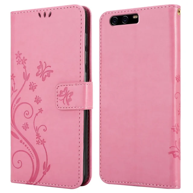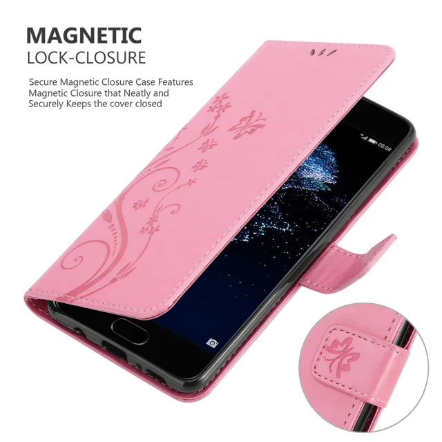 CADORABO Huawei P10 PLUS v klasična zlata - ovitek v cvetličnem dizajnu z magnetnim zapiranjem, stoječo funkcijo in režami za kartice