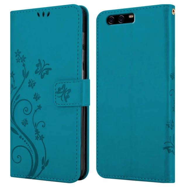 CADORABO Huawei P10 v klasična rožnata zlata - ovitek v cvetličnem dizajnu z magnetnim zapiranjem, stoječo funkcijo in režami za kartice