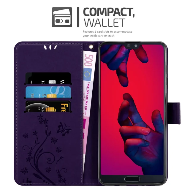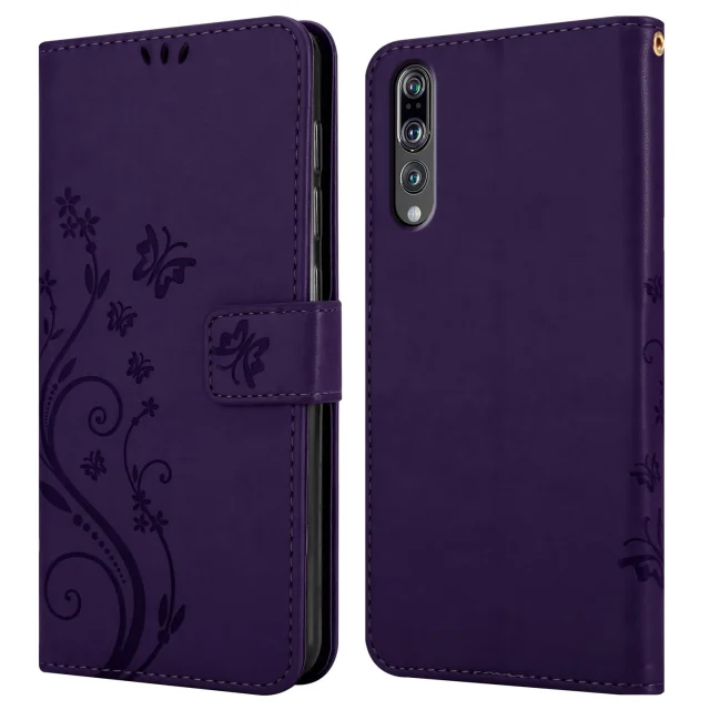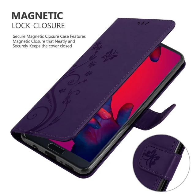 CADORABO Huawei P20 PRO/P20 PLUS v klasična temno modra - ovitek v cvetličnem dizajnu z magnetnim zapiranjem, stoječo funkcijo in režami za kartice
