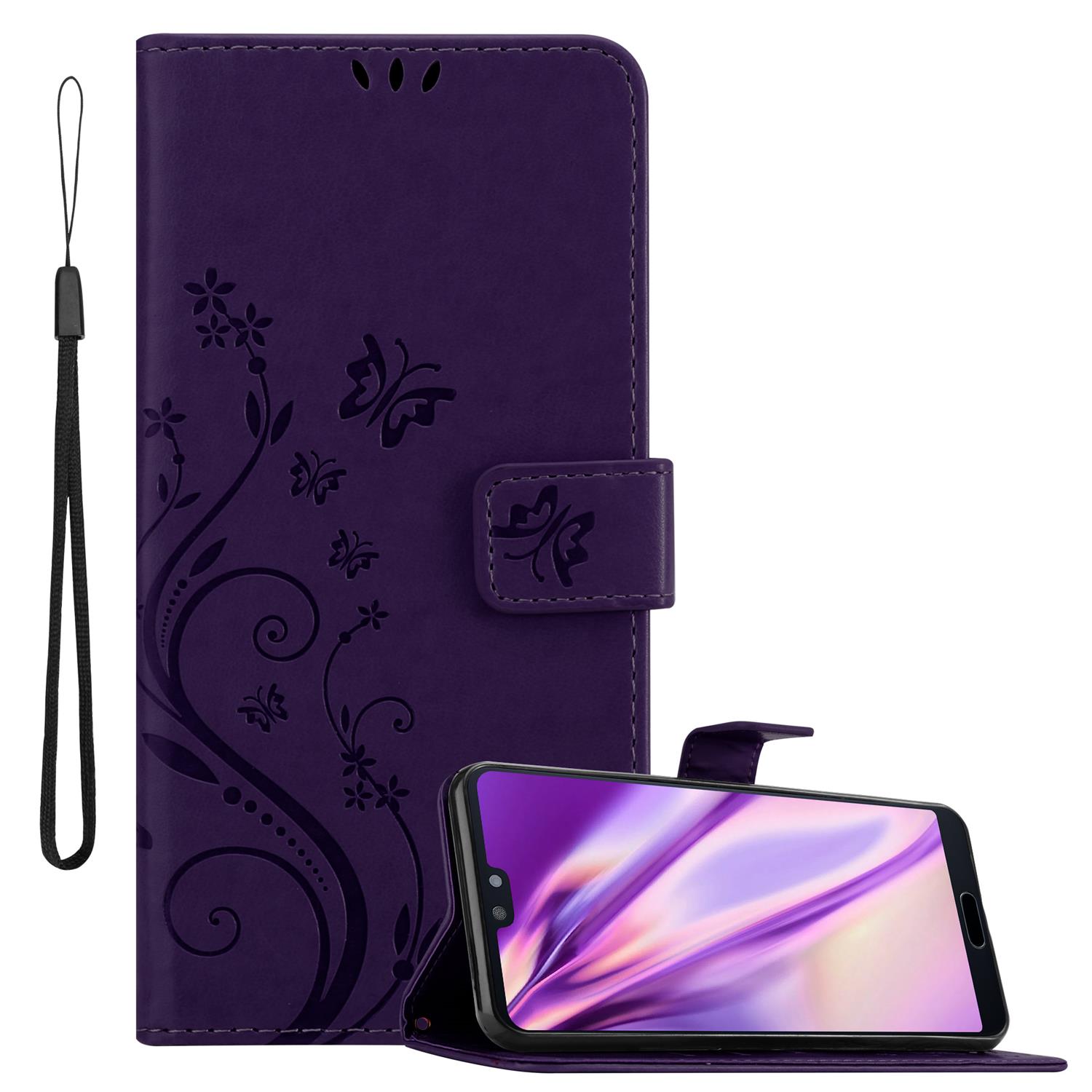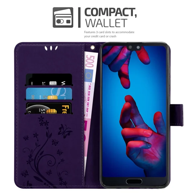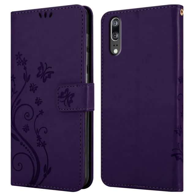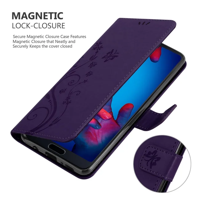 CADORABO Huawei P20 v klasična temno modra - ovitek v cvetličnem dizajnu z magnetnim zapiranjem, stoječo funkcijo in režami za kartice