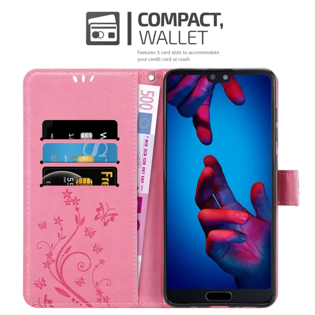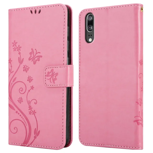 CADORABO Huawei P20 v klasična zlata - ovitek v cvetličnem dizajnu z magnetnim zapiranjem, stoječo funkcijo in režami za kartice