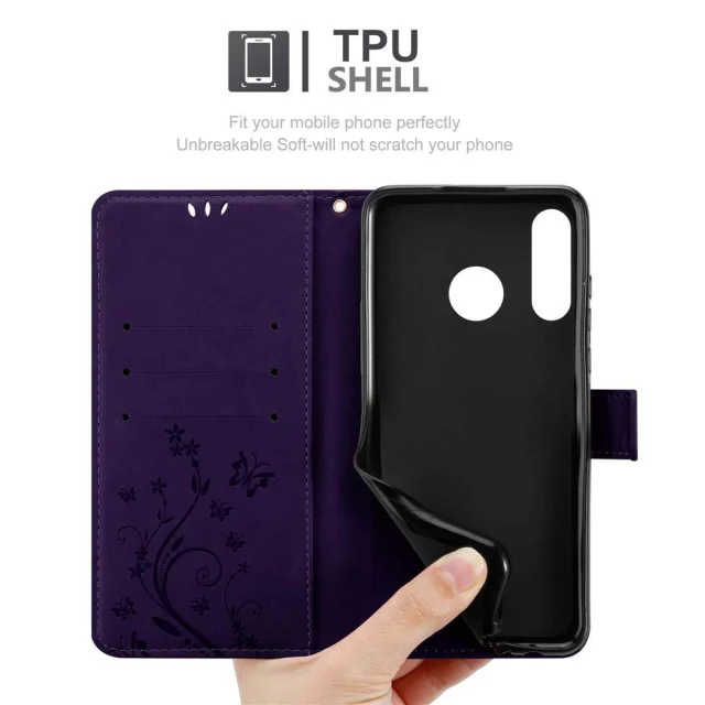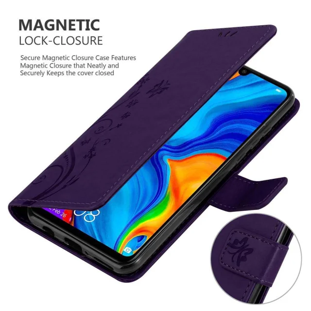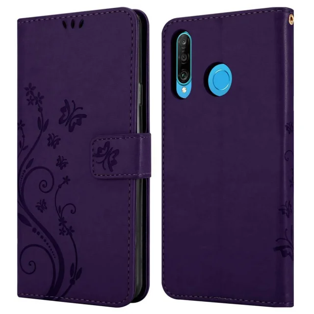 CADORABO Huawei P30 LITE v klasična temno modra - ovitek v cvetličnem dizajnu z magnetnim zapiranjem, stoječo funkcijo in režami za kartice