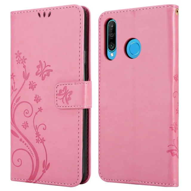CADORABO Huawei P30 LITE v klasična zlata - ovitek v cvetličnem dizajnu z magnetnim zapiranjem, stoječo funkcijo in režami za kartice