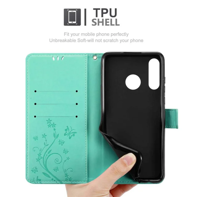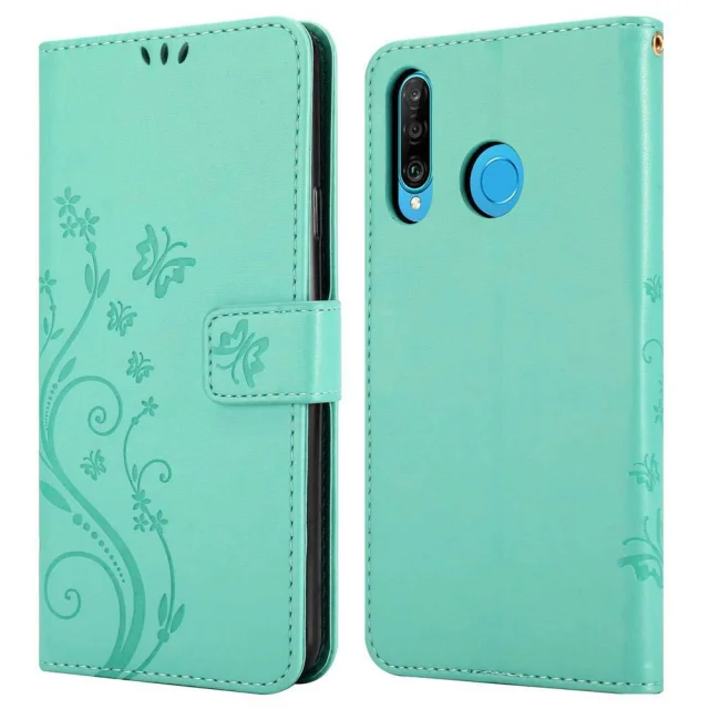 CADORABO Huawei P30 LITE v klasično srebrno - ovitek v cvetličnem dizajnu z magnetnim zapiranjem, stoječo funkcijo in režami za kartice