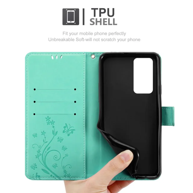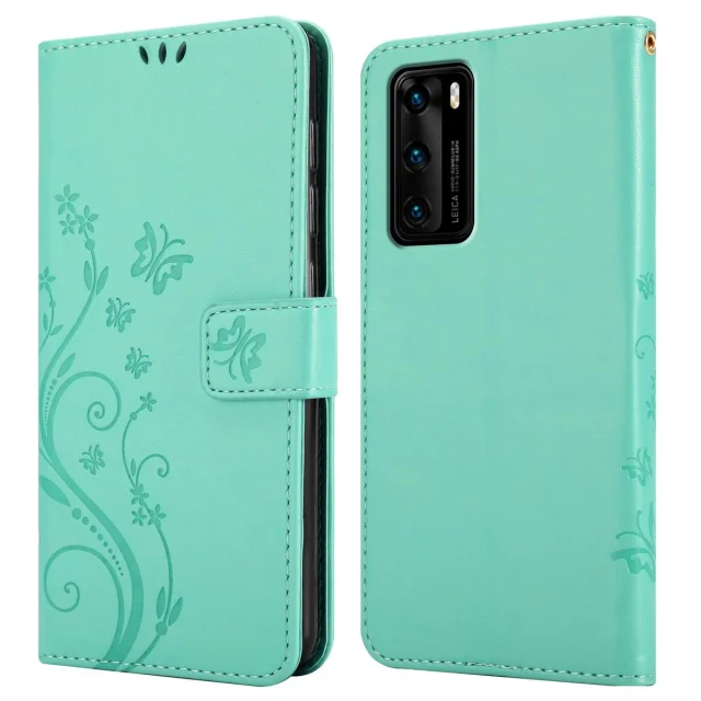 CADORABO Huawei P40 v klasično srebrno - ovitek v cvetličnem dizajnu z magnetnim zapiranjem, stoječo funkcijo in režami za kartice