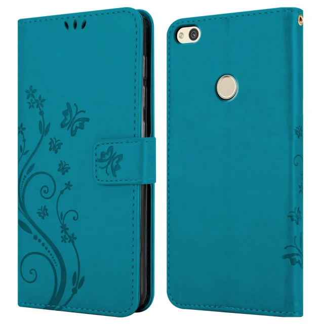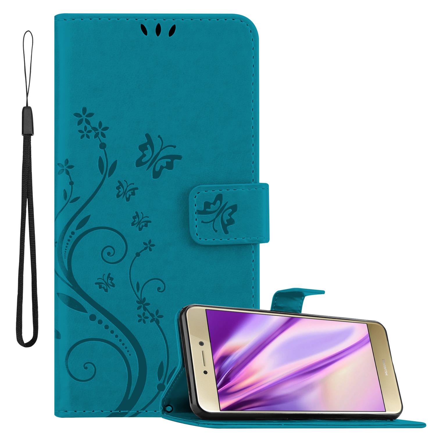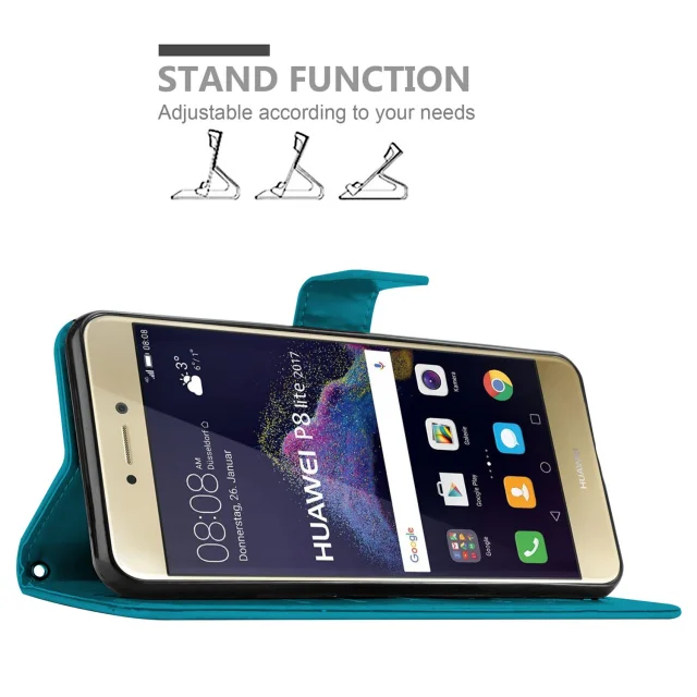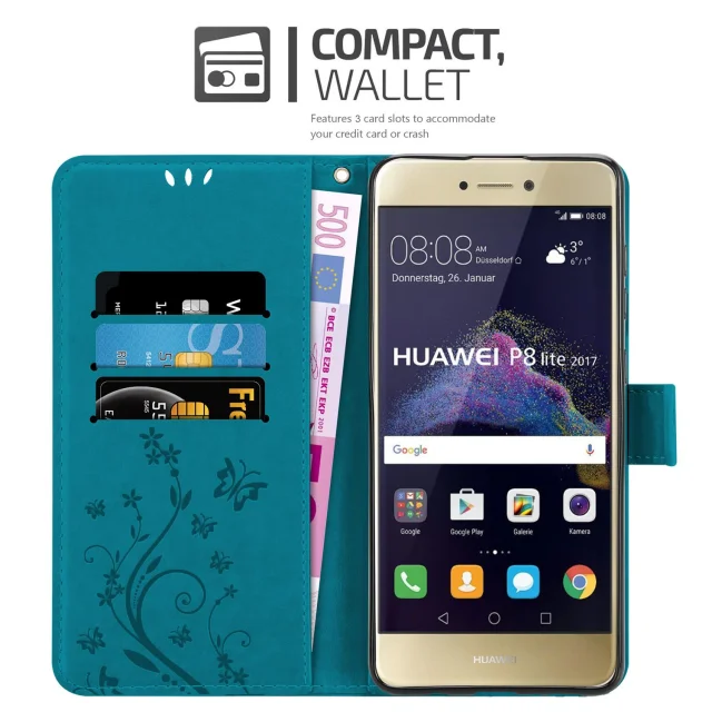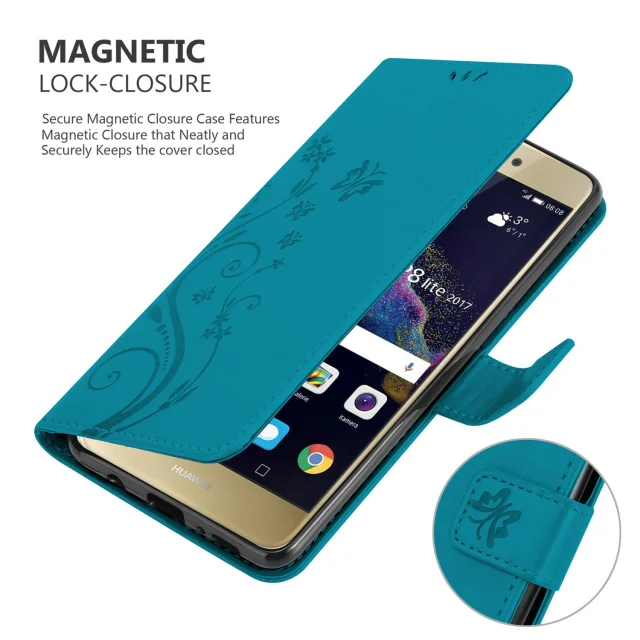 CADORABO Huawei P8 LITE 2017/P9 LITE 2017 rožnato zlata - ovitek v cvetličnem dizajnu z magnetnim zapiranjem, stoječo funkcijo in režami za kartice