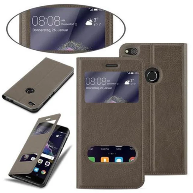 CADORABO Huawei P8 LITE 2017/P9 LITE 2017 v kamnito rjava - Zaščitni ovitek z magnetnim zapiranjem, stoječo funkcijo in 2 okencema za gledanje