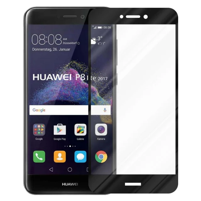CADORABO Huawei P8 LITE 2017/P9 LITE 2017 - Zaščitna folija za transparentna s črno barvo - Zaščitno steklo s kaljenim zaslonom s trdoto 9H