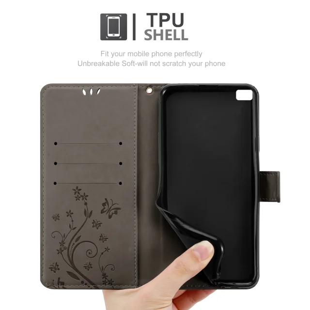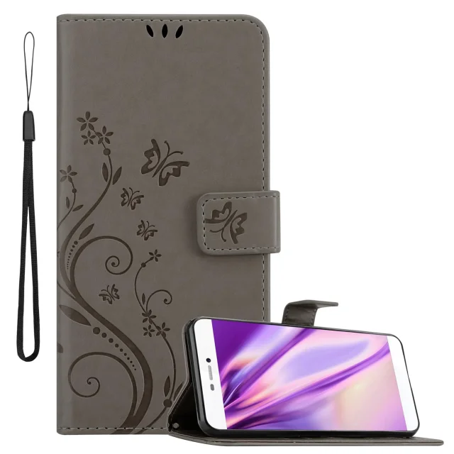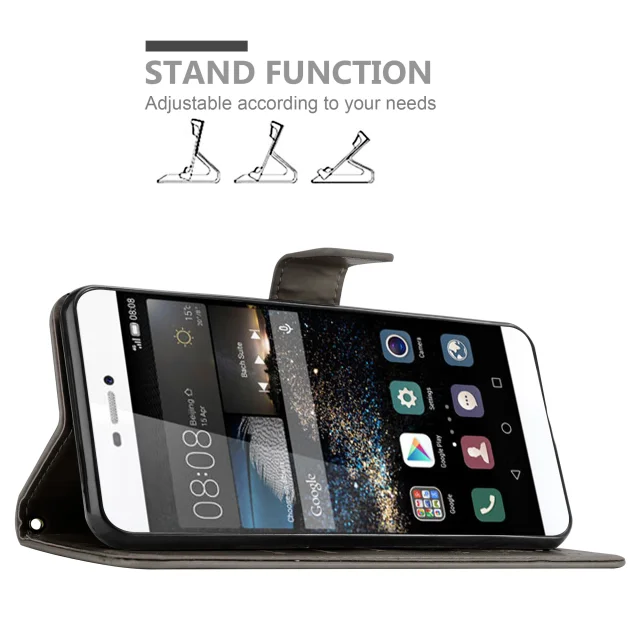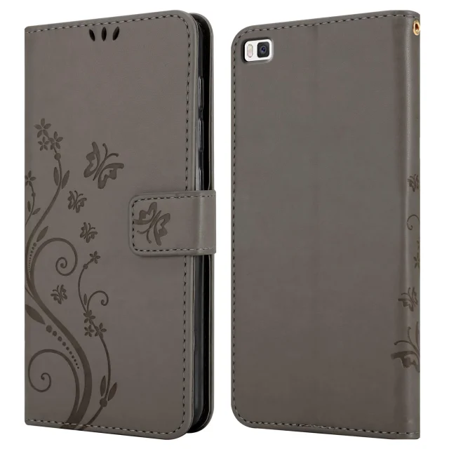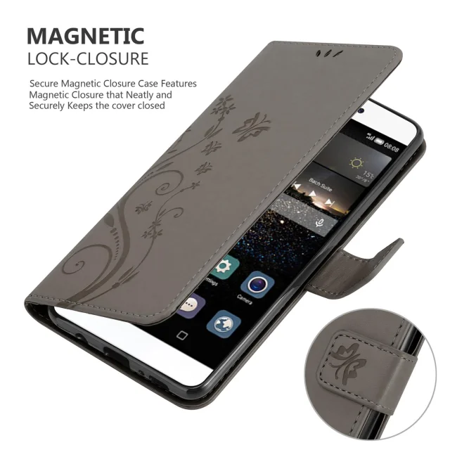 CADORABO Huawei P8 v klasična črna - ovitek v cvetličnem dizajnu z magnetnim zapiranjem, stoječo funkcijo in režami za kartice