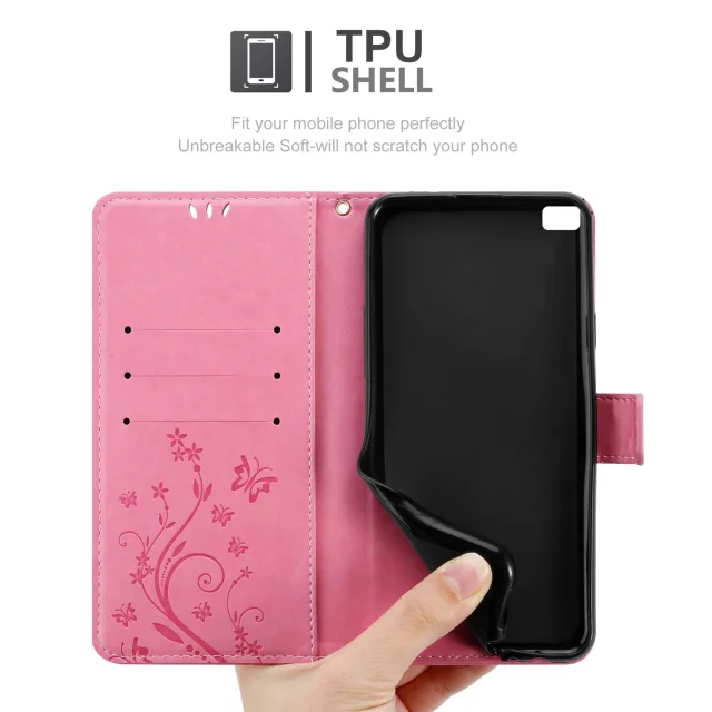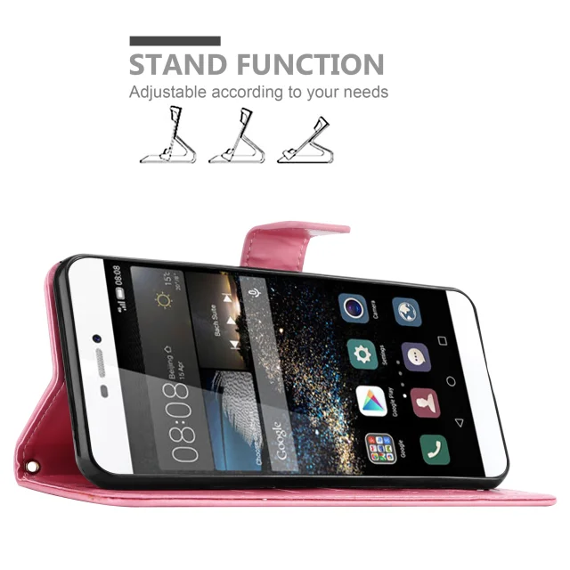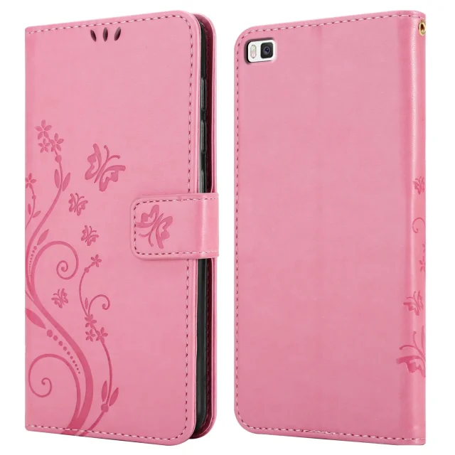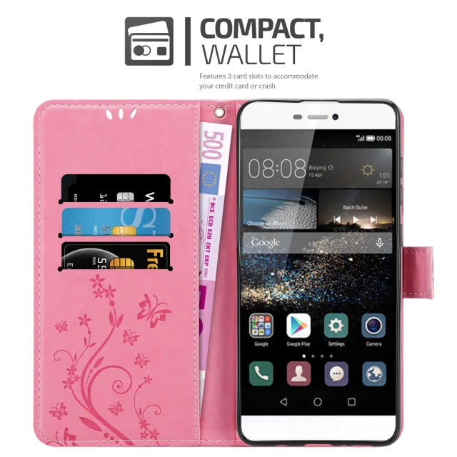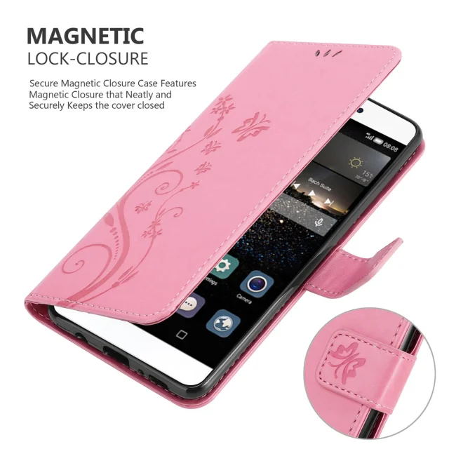 CADORABO Huawei P8 v klasična zlata - ovitek v cvetličnem dizajnu z magnetnim zapiranjem, stoječo funkcijo in režami za kartice
