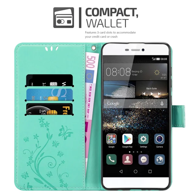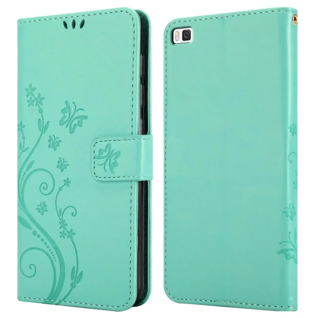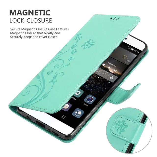 CADORABO Huawei P8 v klasično srebrno - ovitek v cvetličnem dizajnu z magnetnim zapiranjem, stoječo funkcijo in režami za kartice
