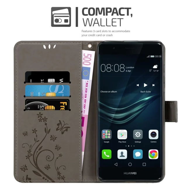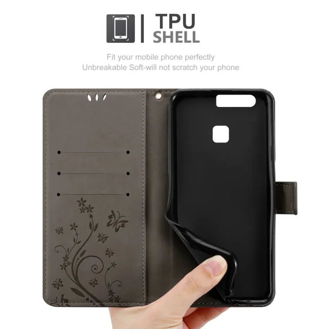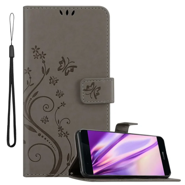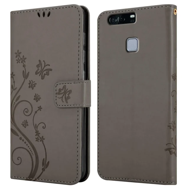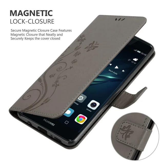 CADORABO Huawei P9 PLUS v klasična črna - ovitek v cvetličnem dizajnu z magnetnim zapiranjem, stoječo funkcijo in režami za kartice