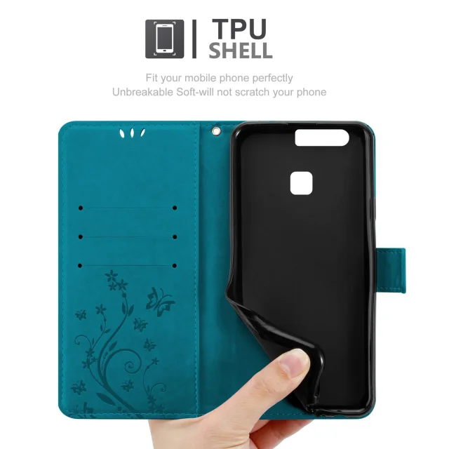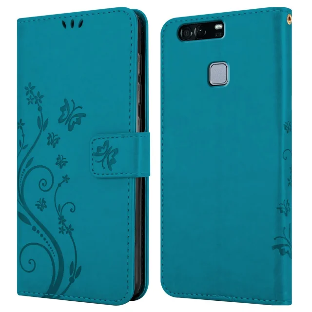 CADORABO Huawei P9 PLUS v klasična rožnata zlata - ovitek v cvetličnem dizajnu z magnetnim zapiranjem, stoječo funkcijo in režami za kartice