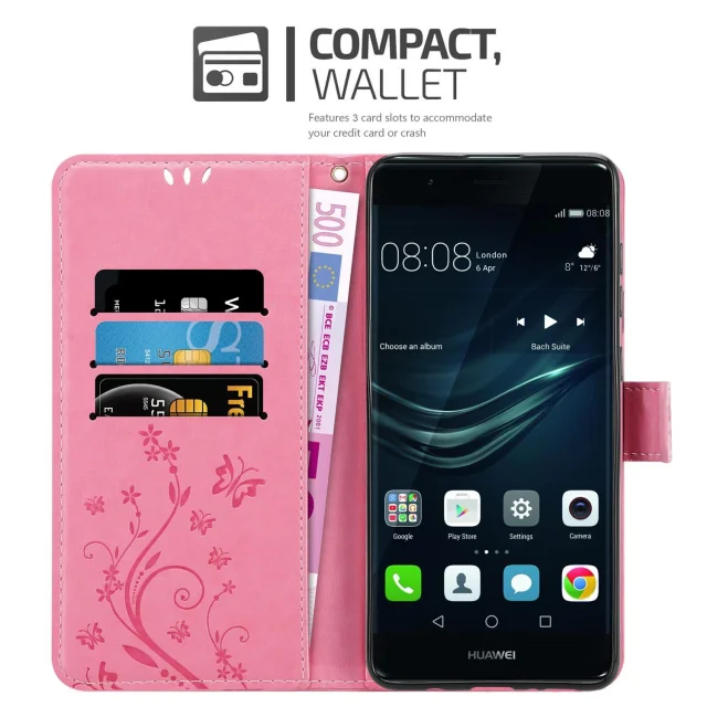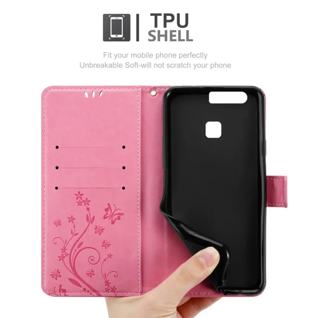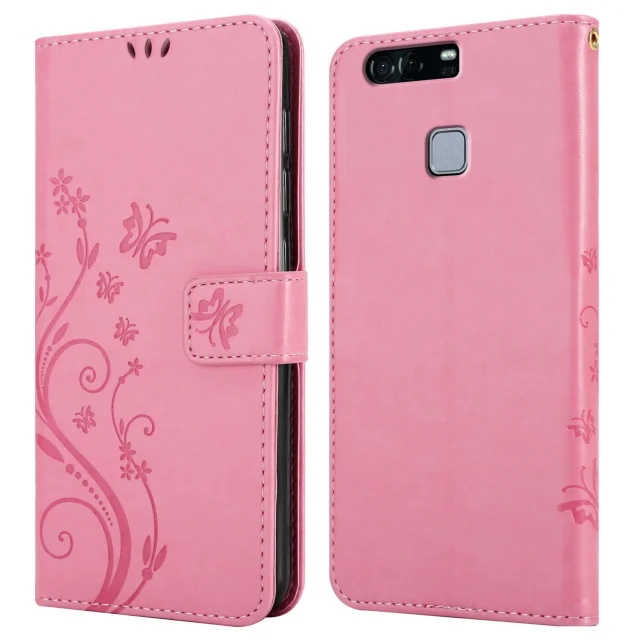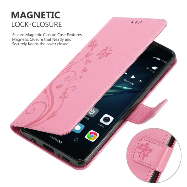 CADORABO Huawei P9 v klasična zlata - ovitek v cvetličnem dizajnu z magnetnim zapiranjem, stoječo funkcijo in režami za kartice