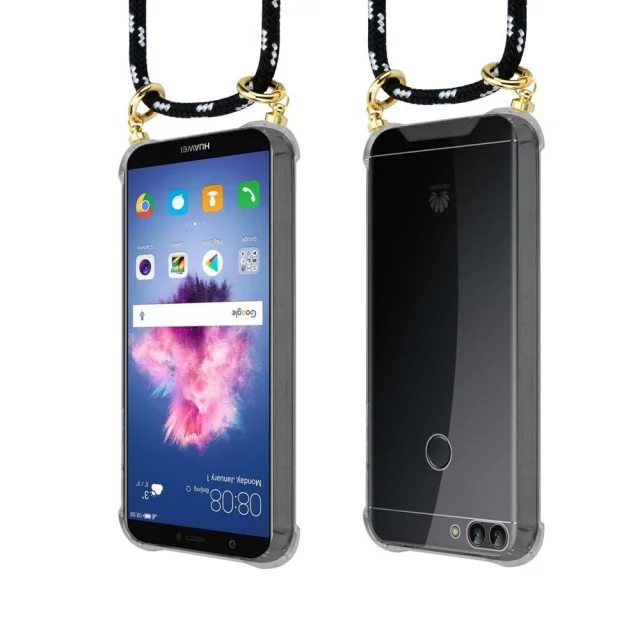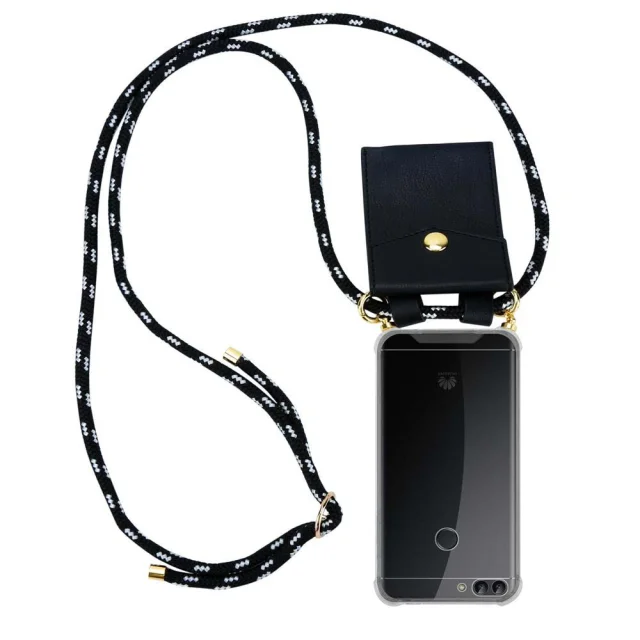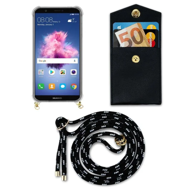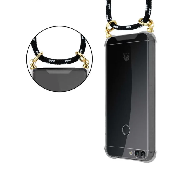 CADORABO Huawei v črni srebrni barvi - silikonski zaščitni pokrov z zlatimi obroči, kabelskim pasom in snemljivim ohišjem