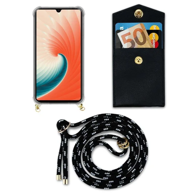 CADORABO Huawei v črni srebrni barvi - silikonski zaščitni pokrov z zlatimi obroči, kabelskim pasom in snemljivim ohišjem